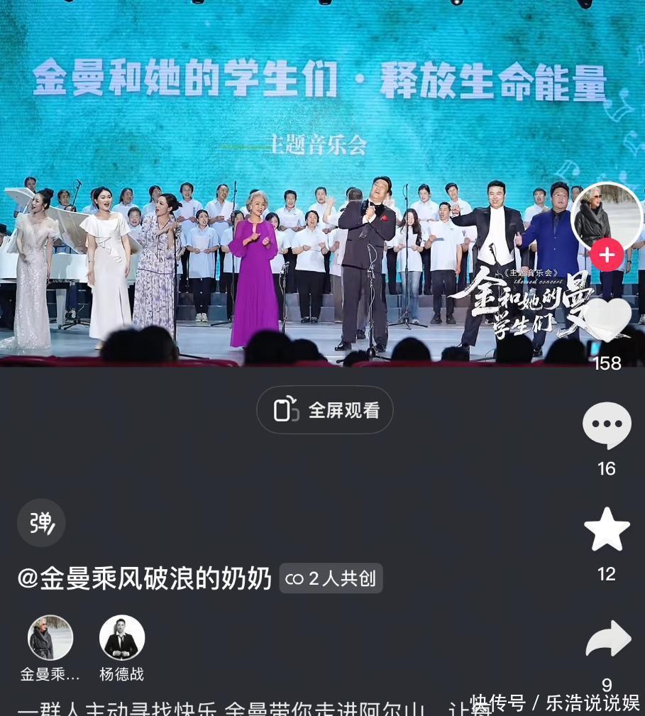 如今虽然已经68岁,但金曼还在坚持歌唱教育事业,且一直在短视频平台上更新动态。今年7月份,还携带一众学生们前往阿尔山,体验大自然,也体验在大自然里歌唱的感觉。